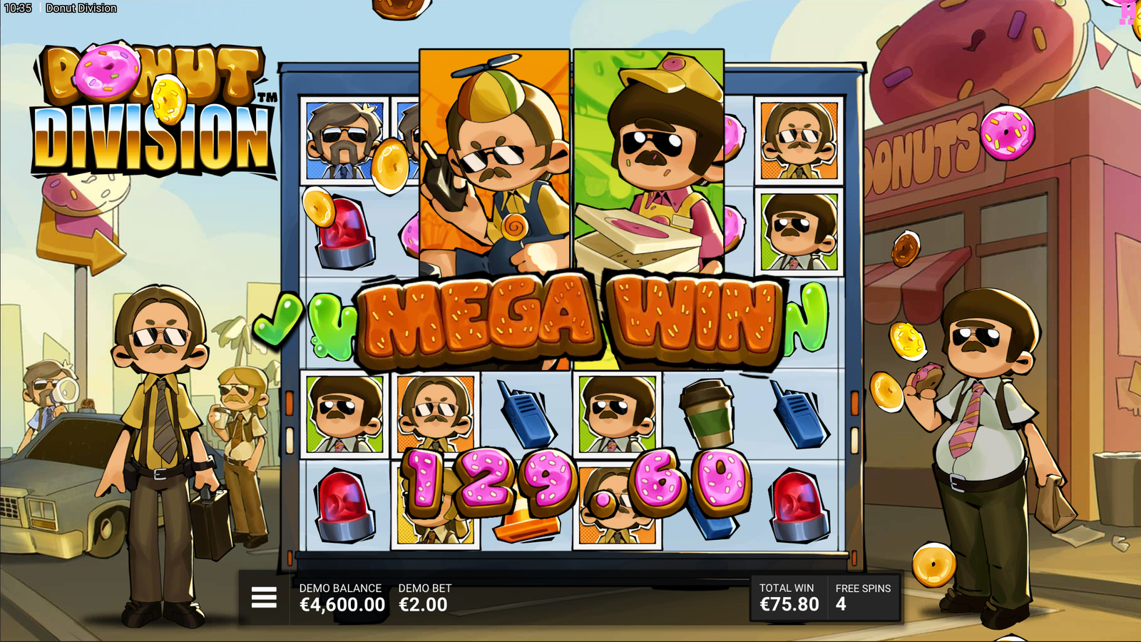 Donut Division est une machine à sous pleine de charme, avec son thème gourmand, ses graphismes joyeux et son gameplay innovant. Ce jeu offre une expérience divertissante, avec des fonctionnalités intéressantes et une atmosphère ludique idéale pour les joueurs à la recherche de fun.