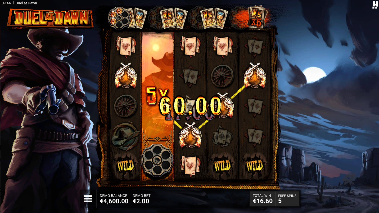 Avec un RTP de 96,25%, Duel at Dawn propose un taux de redistribution compétitif. La volatilité est élevée, ce qui ajoute de l’intensité et du suspense au jeu, notamment dans les moments où les fonctionnalités bonus sont activées.