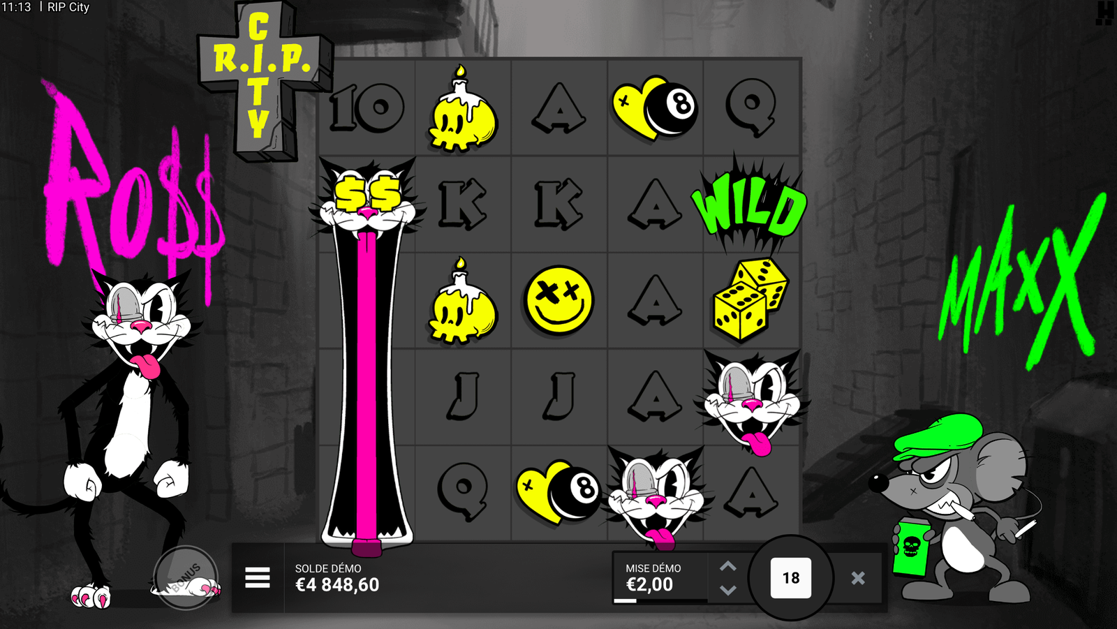 R.I.P. City propose une configuration classique de 5 rouleaux et 20 lignes de paiement. Son gameplay introduit des mécanismes innovants, notamment les symboles Wilds sous forme de chats espiègles, qui remplacent tous les autres symboles sauf les Scatters. Les Scatters déclenchent un mode de tours gratuits où des multiplicateurs croissants et des Wilds collants enrichissent l’expérience. La fonctionnalité Cat Attack peut transformer des rouleaux entiers en Wilds empilés. De plus, l’option Bonus Buy permet d’accéder directement aux tours gratuits pour une expérience encore plus intense.